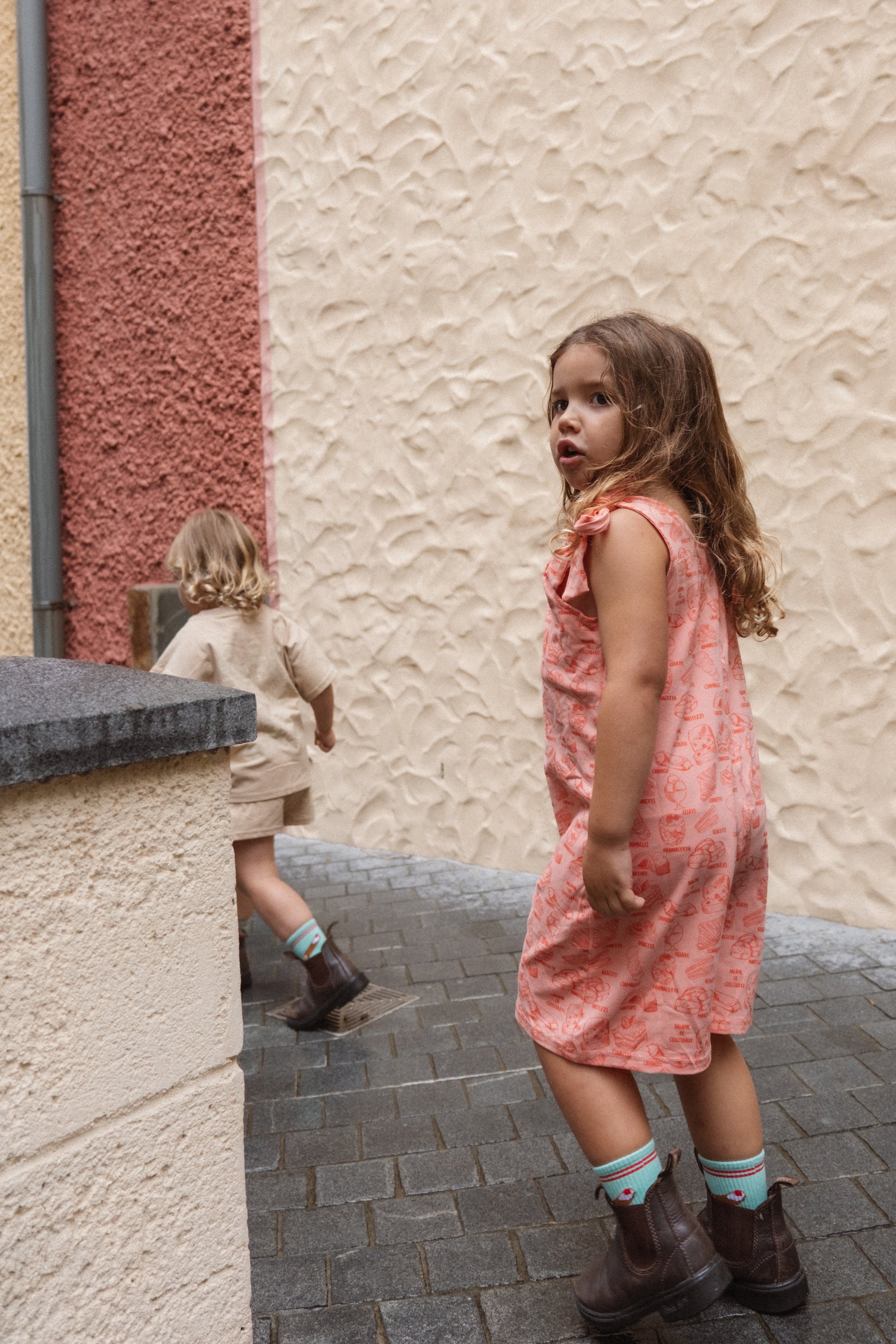 Get ready to have some fun in our Dolci Playsuit! Featuring our signature capsule artwork of sweet Italian treats in candy apple red, this adorable playsuit has adjustable shoulder ties for the perfect fit. Made for playtime, your little one will love running around and causing mischief in this comfy and sweet outfit.